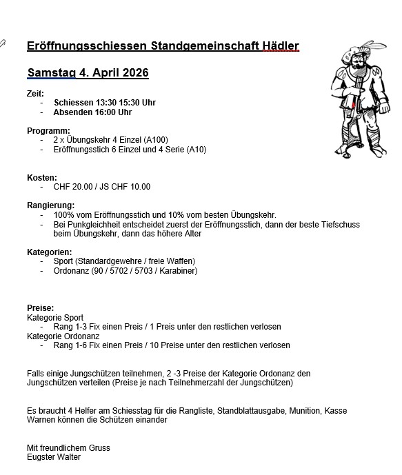 Ich möchte euch mit Begleitung zum Absenden der Schiesssaison 2025